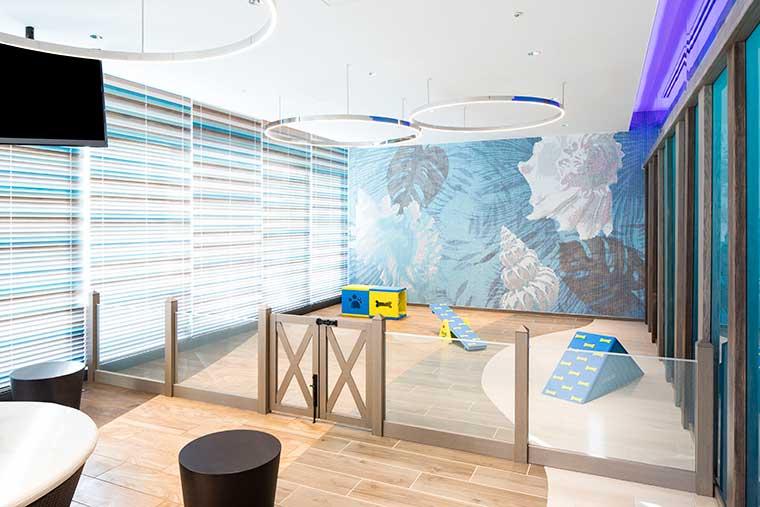 海の中をイメージした清潔感あるドッグラウンジ