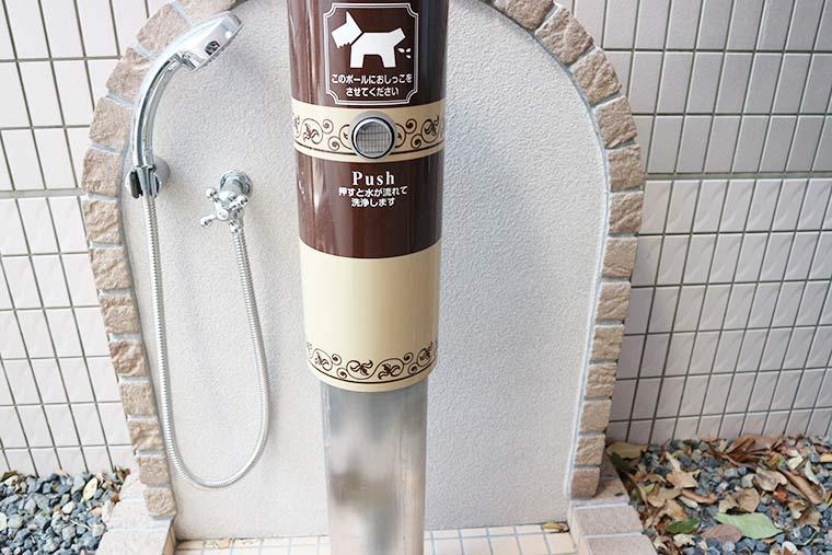 カフェ近くの駐車場には、ワンちゃん用のトイレや足洗い場が用意されているので、お部屋に入る前にトイレと足洗いを済ませておくことができます。