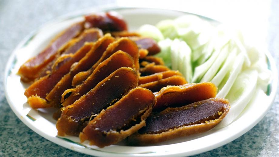 日本より安価で手に入るカラスミ。良質なカラスミは見た目が美しく、厚さが均一で、卵の粒が透き通って見えます。食べ方は火で炙って食べることが多く、おつまみとして人気があります。一般のデパートや特産品店で販売されていて、台湾では旧正月にお祝いの贈り物として用いられることが多いです。