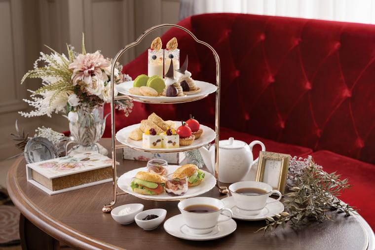 宿泊者以外も利用できるホテルのラウンジ「ルネサンス」では、3段のティースタンドで提供される季節のアフタヌーンティーセットや、組色の5種類(色は時期によって異なる)を用意した「ときめく#推し会ケーキセット」などを提供しており、優雅なティータイムを過ごせます。