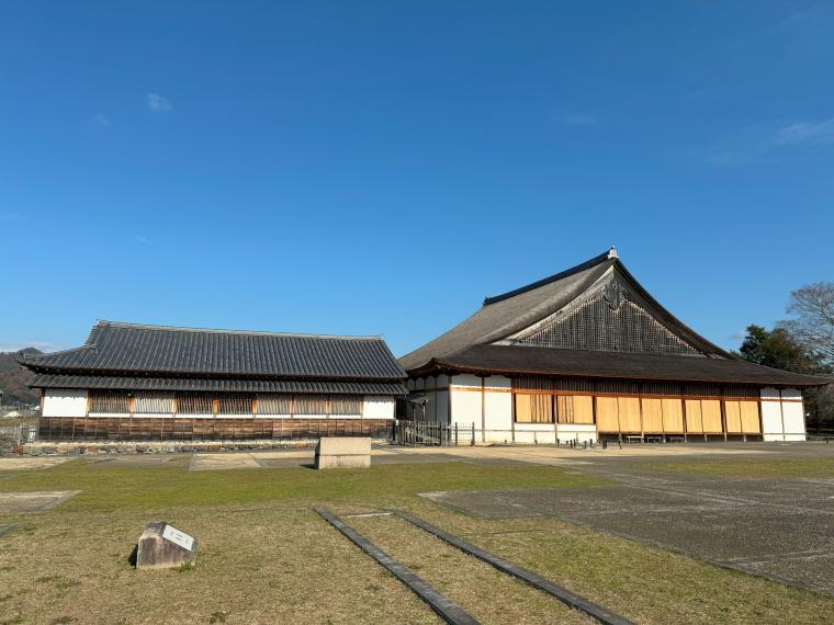 続いて訪れたのは、「大正ロマン館」や「篠山観光案内所」から徒歩約7分のところにある「篠山城大書院」。関ヶ原の戦い後、徳川家康の命によって1609(慶長14)年に築城された篠山城と同時に建てられました。藩主の生活した場所と伝えられ、1944年に火災で焼失しましたが、2000(平成12)年に復元。木村拓哉主演の映画『The LEGEND&BUTTERFLY』など、数々の映画のロケ地でもあり、篠山観光の名所のひとつとなっています。