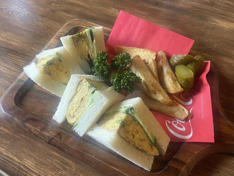 分厚い卵焼き入りの「たまごサンド」(1,300円)もおすすめ。ひと口ふくめば、卵焼きの優しいだしが体に染み渡ります。