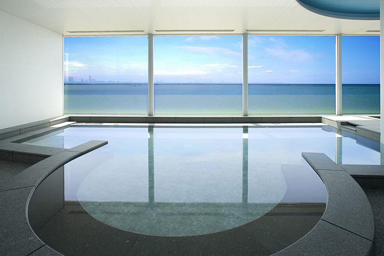 窓際一面に奥行き1メートル、幅3メートルのミニプールのようなバスタブが広がり、海や東京ディズニーリゾート方面の眺望を楽しみながらお風呂に入れます。