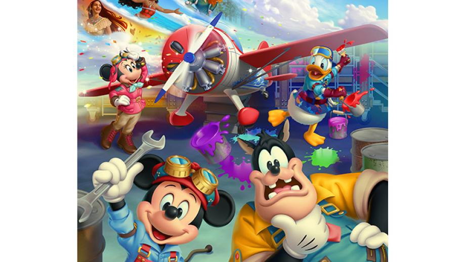 ショーの途中では、パイロットのミニーや職人たちそれぞれの夢や想いに呼応して、ディズニー映画やピクサー映画の作品に登場するキャラクターたちが登場。ディズニーの仲間たちが飛行機づくりに奮闘する1日を、バラエティーに富んだシーン展開と遊び心あふれるパフォーマンスで楽しめます。