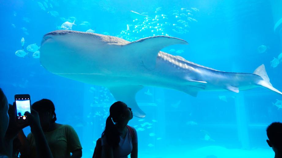 そして、海遊館といえば「ジンベエザメ」。大きな体で広い「太平洋」水槽内を雄大に泳ぐ姿に、皆釘付けです。ほぼすべての水槽に最新のLED照明を導入し、海中の光の様子も映し出しています。