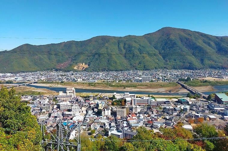 山の静寂に包まれたこの場所で、心が洗われるような神聖な空気を感じたあとは、素晴らしい景色を楽しむことができます。千曲川の穏やかでゆったりとした流れを一望できるのはこの場所ならではの特別な魅力です。