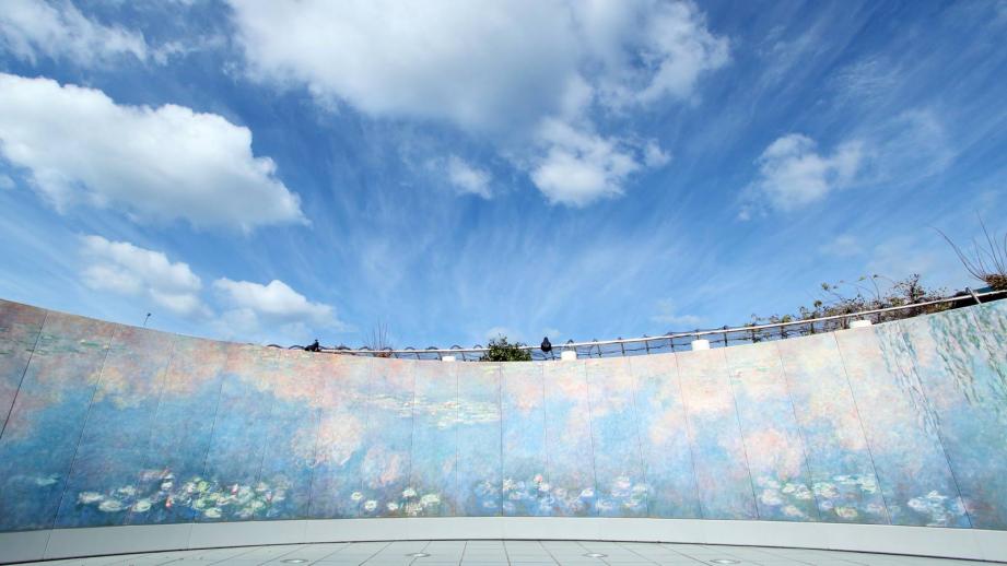 6月〜9月には作品の周りの池に本物の睡蓮が咲きます こちらの展示は、単に屋外で展示しているということ以上の意味を持ちます。モネなどの印象派と呼ばれる画家たちは、アトリエを出て太陽の下で創作をしていました。移りゆく自然を直接目で見ながらその瞬間をキャンバスに描き出したとされています。