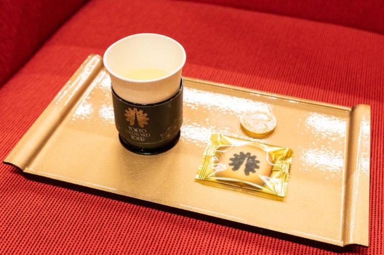 紅葉の赤を基調にしたゴージャスなこのラウンジは、TOKYO DIAMOND TOUR参加者のみが利用できる特別な空間。ツアーが始まるまで、飲み物やお菓子をいただきながらゆっくりと過ごせます。