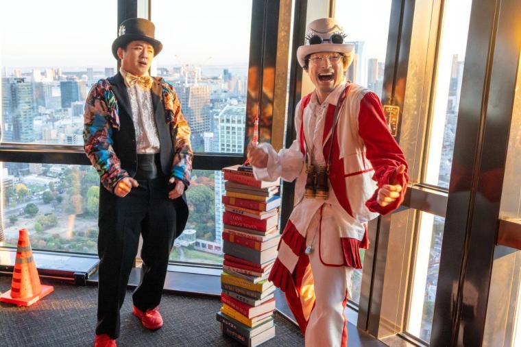 高さ150メートルの「メインデッキ」に到着すると、今度はパフォーマーの「ウォッチャー」がおもてなし。メインデッキから見える景色の紹介や双眼鏡を使ったパフォーマンスで参加者たちを和ませてくれます。