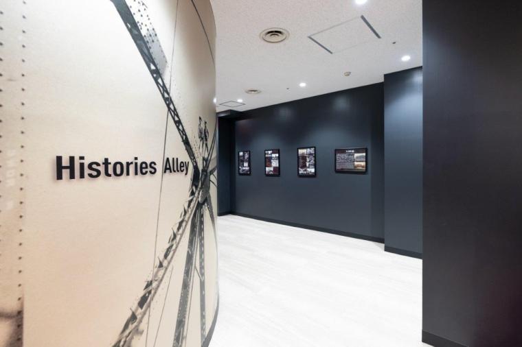 レッドカーペットが敷かれたフロアの壁や、それに続く「Histories Alley(ヒストリーズアレイ)」には、東京タワーの写真や建設当時の写真などが飾られています。
