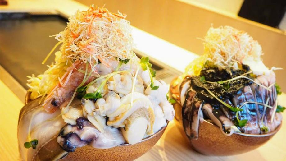 さらにそのまま「波除通り(なみよけどおり)」の方に進み、角を左に曲がったところにあるのが『まぐろのみやこ』。お店のスペースはこじんまりとしていますが、常に人が絶えないのですぐに発見できるはず。こちらでは大きなホタテの貝殻の上に、ホタテ、マグロ、エビ、ウニなどを贅沢に乗せた「海鮮焼」(1,000円)が名物。