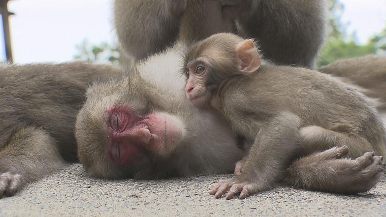 そしてもう1匹の注目がメスザルの「スライム」。きっかけはことし5月のことでした。餌場で産気づいたスライム。無事に元気な赤ちゃんを出産しました。