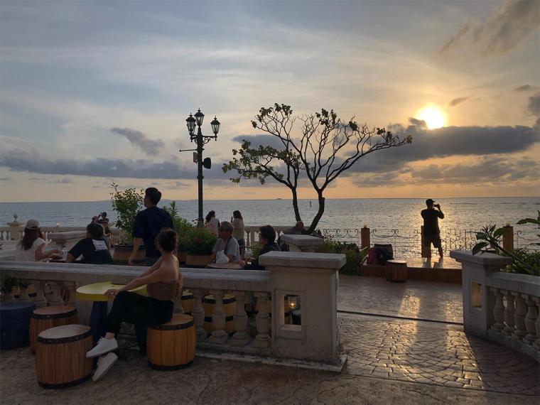 太陽が海に沈む瞬間、空は美しい赤やオレンジに染まり、やがてムラサキや淡いグリーンになるマジックアワーとなります。この時は息をのむほど魅力的です。晴れの日はもちろん、曇りの日でも時に幻想的な景色を見せてくれるので、観光客や地元の人々がサンセットの時間帯にこの美しい自然のショーを楽しむために集まります。