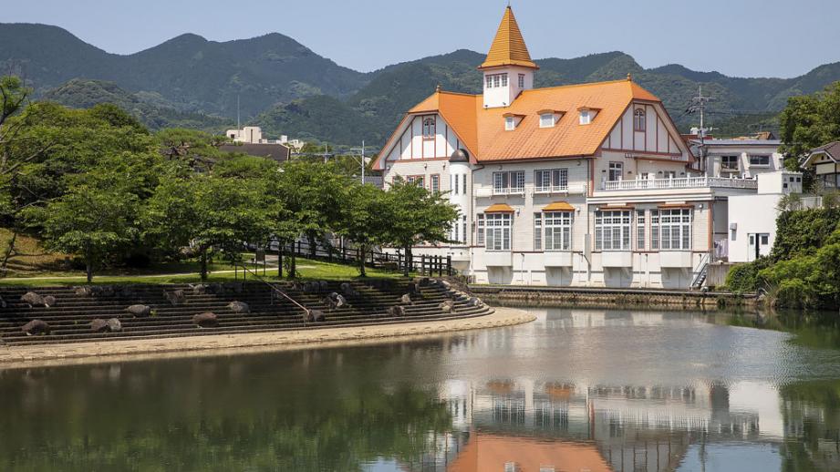 オレンジの屋根は嬉野温泉のシンボル「公衆浴場シーボルトの湯」
