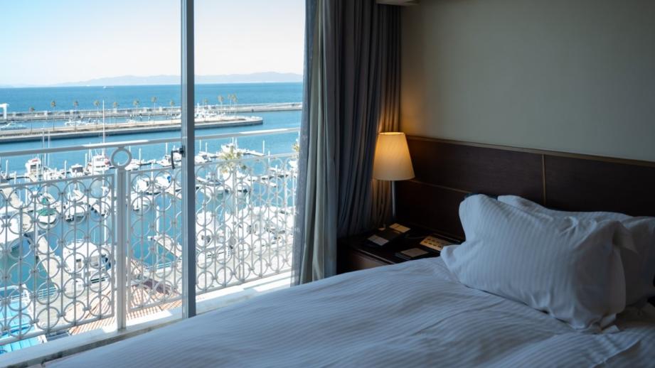 なかでもスイートルーム(写真はBタイプ)は、ひときわゆとりのあるバルコニーを備えているのが特徴。ヨットハーバーと海を一望できる開放的な空間が広がり、まるで絶景を独り占めしているかのような特別感を味わえます。記念日など、大切な日の滞在にもふさわしい一室です。