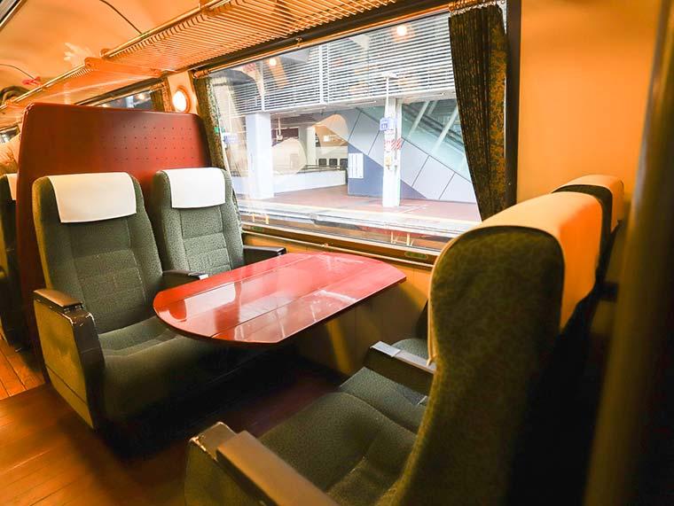 基本は横2席×2列の座席配置ですが、大型テーブル付きのボックスシートもあります。こちらは、3名以上で利用可能。車窓の風景を眺めながら、家族や友人と語らう時間は、お互いの距離をいっそう縮めてくれそうです。