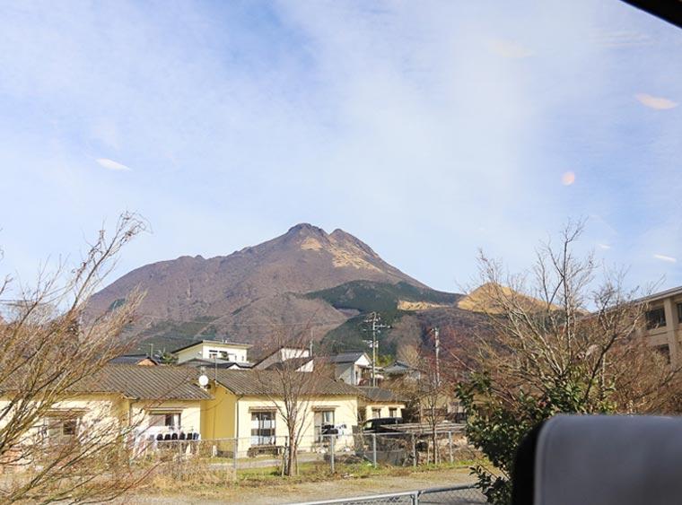由布院駅に近づくと、博多から向かう場合は左(A列側)に「由布岳」が見えてきます。標高1,583m、東峰と西峰の2つの頂を持ち、「豊後(ぶんご)富士」とも呼ばれる由布岳。由布院到着を知らせてくれているようで、気持ちが盛り上がります。