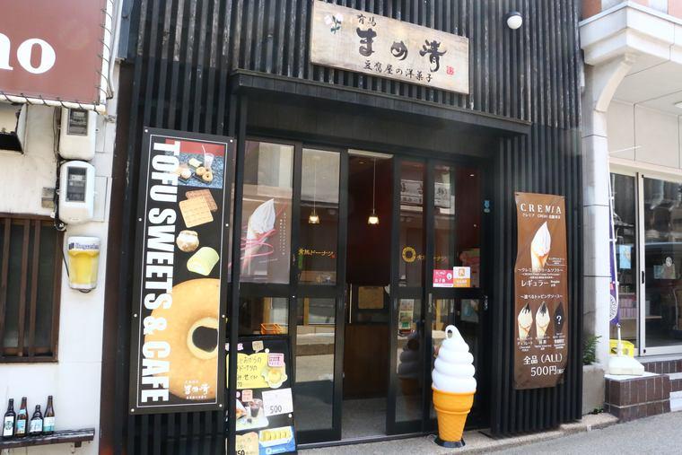 湯めぐりしたあとなら、元お豆腐屋さんである「有馬 まめ清 豆腐屋の洋菓子店」のドーナツと、豆乳ソフトクリームも見逃せません。