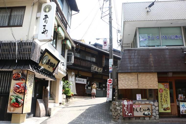 金の湯に入ったあとは、風情ある「湯本坂」を上るのがおすすめ。伝統的な家屋やお土産物屋さんが並んでいます。