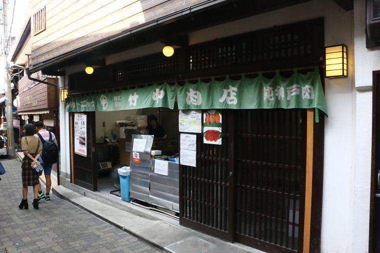 「竹中肉店」は国産黒毛和牛・神戸牛を扱う専門店で、持ち帰り用メニューも豊富。特に人気だという「お肉屋さんコロッケ」は、神戸牛のミンチも入って170円とお得です。