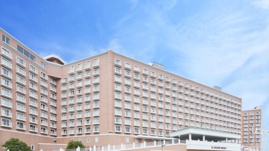「グランドニッコー東京ベイ 舞浜」は南欧の雰囲気が漂うピンク色の外観が特徴。グランドニッコーの「上質な空間の中で、五感を解き放つ心地よさを体感できるホテル」というブランドコンセプトのもと、2020年7月1日に開業したばかりの宿泊施設です。