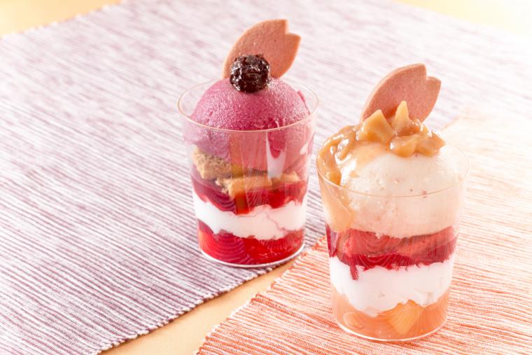 スイーツは山梨県産の桃とブドウを使用した「ジェラートサンデー」(写真)や、テイクアウトにもピッタリな「季節のジャースイーツ」など春らしいメニューが勢揃い。絶品スイーツと壮大な景色の中で、開放的な気分に浸ることができます。