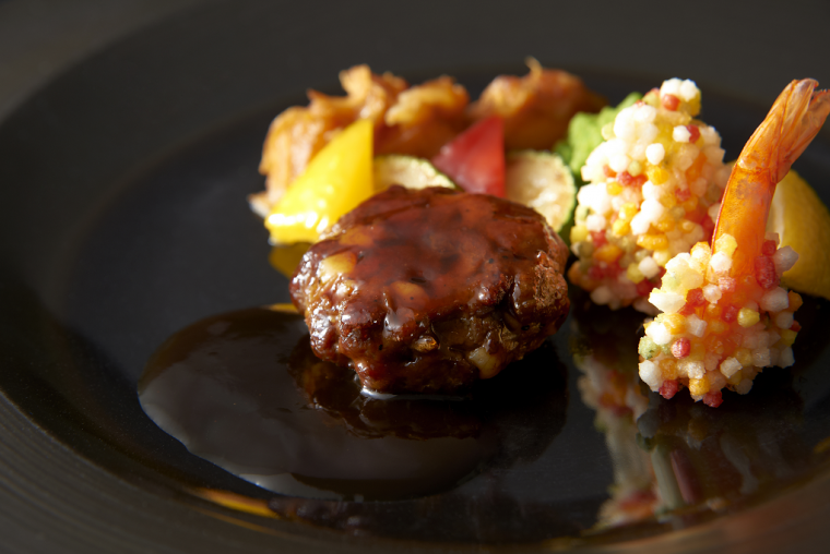 「弐の段」にも、フィレ肉を使ったジューシーなハンバーグ「グランドビーフステーキ レモンソース 彩り野菜添え」、衣をつけてふっくらと仕上げた「白身魚のピカタ ピペラードソース」「海老の五色あられ揚げ」といった様々な逸品がラインナップ。