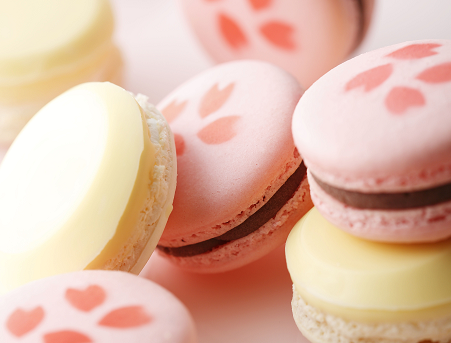 また「桜花弁当“極み”」には、食後のデザートとして「紅白マカロン」を用意しているのも魅力的なポイント。桜をイメージした春スイーツ「さくらマカロン」の生地にはライチハチミツを染み込ませており、中身は桜リキュール入りのこしあんと白あん、そして塩漬けにした桜の花びらが入っています。
