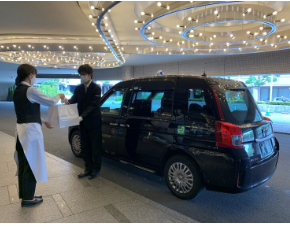 同ホテルではタクシーによるデリバリーサービスも実施。ホテルに足を運ぶことなく自宅でお弁当を受け取れるスタイルは、今の時代にぴったりなおもてなしです。