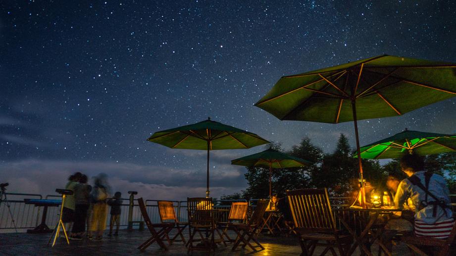 ゴンドラの山頂駅付近にあるのが、「Naeba天空テラス」。標高約1,500mの大自然に包まれながら、高原の爽やかな風を感じられるスポットです。晴れた日には、澄んだ空気の中で満天の星空を星空を眺めながら、ゆったりとした時間を過ごせます。