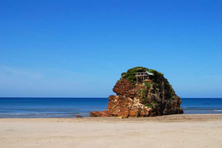 中でも一番人気が高いコースは、出雲の海の風景を楽しみつつ「出雲大社」「稲佐の浜」「日御碕(ひのみさき)神社」といったスポットを観光する「海の出雲 神々由縁の地を巡る」。例えば国譲りや国引きの神話の舞台「稲佐の浜」は、旧暦10月10日に八百万の神々をお迎えする浜として知られています。ひと際目立つ丸い島は地元で「べんてんさん」という名で親しまれており、豊玉毘古命(とよたまひこのみこと)が祀られているそう。