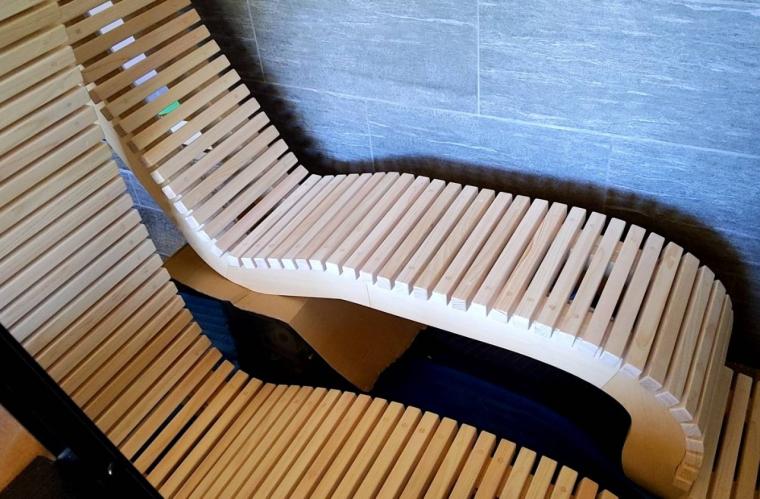 新設サウナを監修したのは、サウナー専門ブランドやサウナのプロデュースを手がけるTTNE。貸切専用サウナ「saunoa room」に設置されたサウナベンチは体にフィットする美しい曲線を描き、ストレスなく休めるように仕上げられているのが特徴です。またソファや床材には濡れても問題のない素材を使用。サウナ上がりに用意される、山崎のプレミアム炭酸水やドリンク4種の存在も見逃せません。