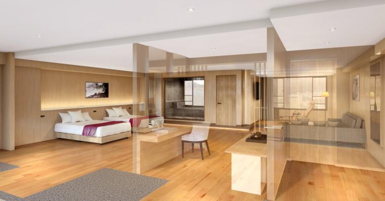 地上45mに新設されたサウナ付客室と貸切専用サウナ