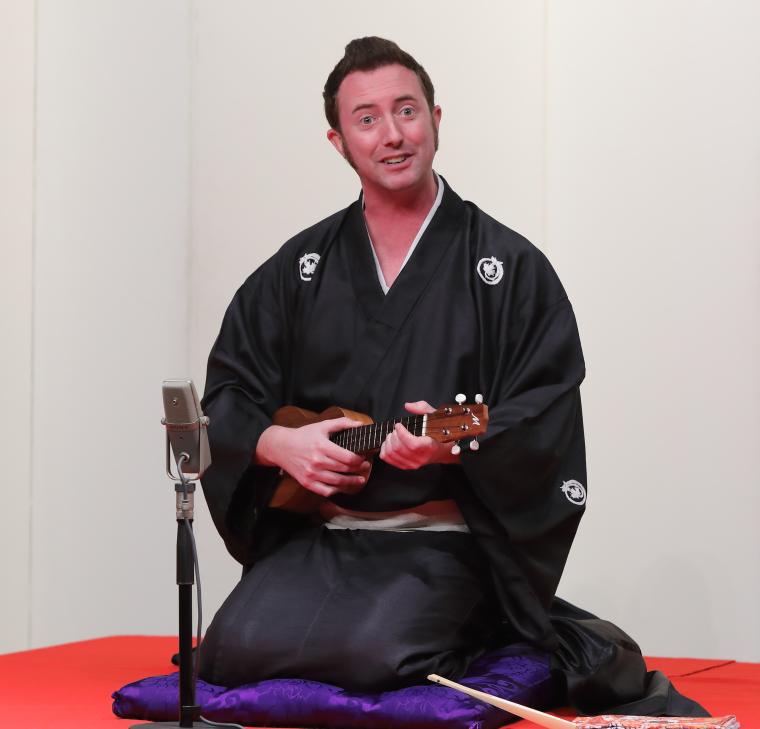 「おもしろ英語で楽しむ落語&三味線芸」で「英語落語」を披露するのは、上方落語家の桂福龍氏。上方落語は大阪・京都を中心とする上方で主に演じられる落語の総称で、派手で陽気に三味線や鳴り物が入る「ハメモノ入り」の落語に魅了されている人も多いのではないでしょうか。