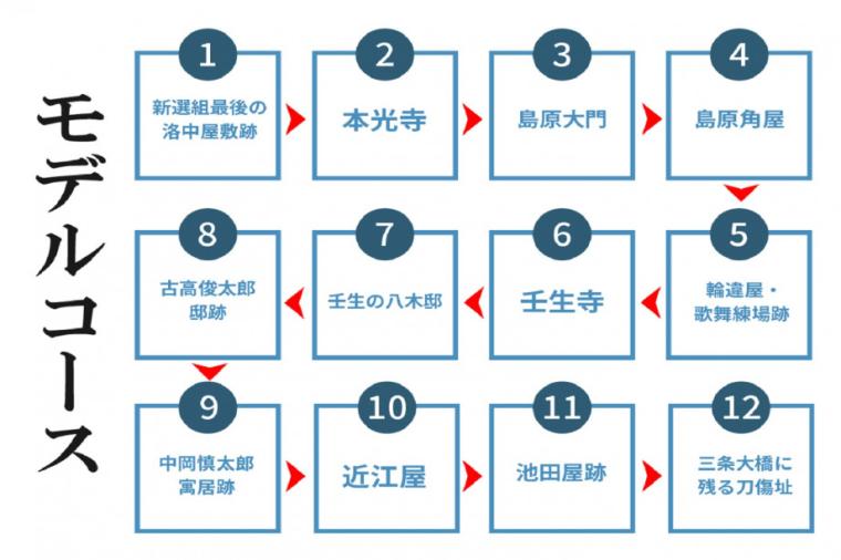 「新選組の誕生」や「京都での絶頂期」、「鳥羽・伏見の戦い」など、歴史に思いを馳せながらベテランガイドとともに新選組の足跡を辿ってみては?
