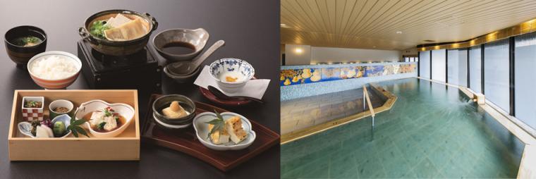 さらに、朝食では大人気の「温泉湯豆腐」を味わえるのも同プランの魅力。ちなみに「新選組の足跡をたどるコース」は適度に歩くので、参加時は歩きやすい服装や靴がおすすめです。ツアーが終わった後は、「京湯元ハトヤ瑞鳳閣」の天然温泉でぜひ疲れを癒してください。