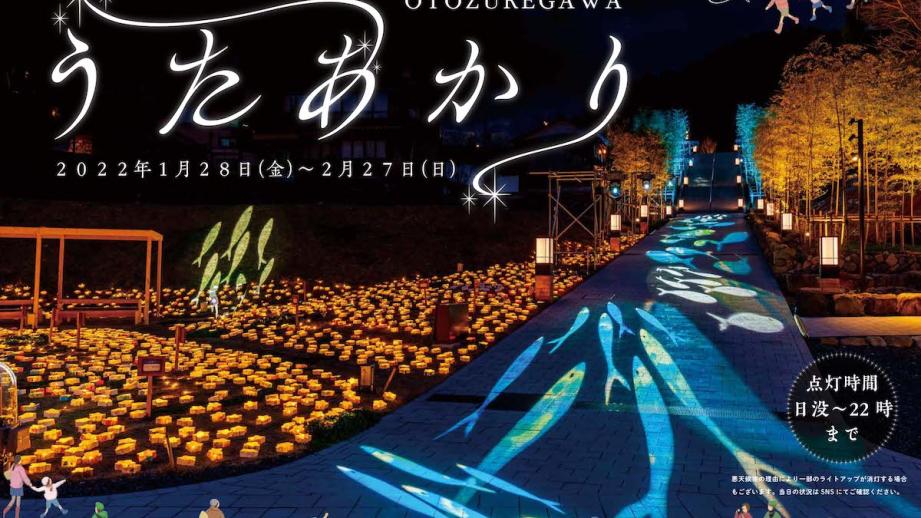 山口県長門市の長門湯本温泉で2022年1月28日から2月27日まで、童謡詩人・金子みすゞの詩をテーマにしたイベント「音信川(おとずれがわ)うたあかり」が開催されます。同イベントでは、詩のナレーションや⾳楽に合わせた光の演出に加え、市内の児童・⽣徒が制作したあかりのモチーフが設置される予定。冬の温泉街が、幻想的な光に彩られます。