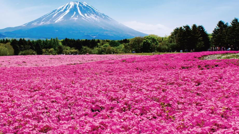 どこまでも広がるピンクの芝桜と、富士山の雄大な景色を満喫!