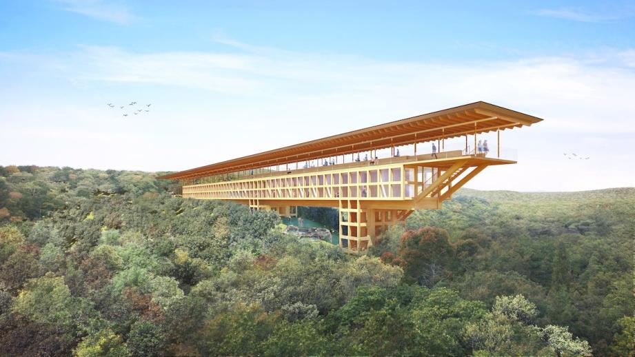 同施設の設計を担ったのは、建築業界で最も権威のある賞のひとつ「プリツカー賞」を受賞した建築家の坂茂氏。木材を組み合わせて作った全長約100mのウッドデッキからは淡路島の景色を望めるほか、360度に広がる絶景の中で座禅をおこなう「空中禅」の体験もできます。