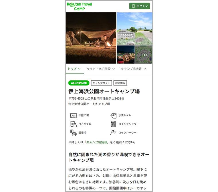 もちろん、「楽天市場」でのお買い物などで貯まった「楽天ポイント」を、キャンプ場の予約に利用することも可能。ますます気軽にキャンプを楽しむことができそうです。