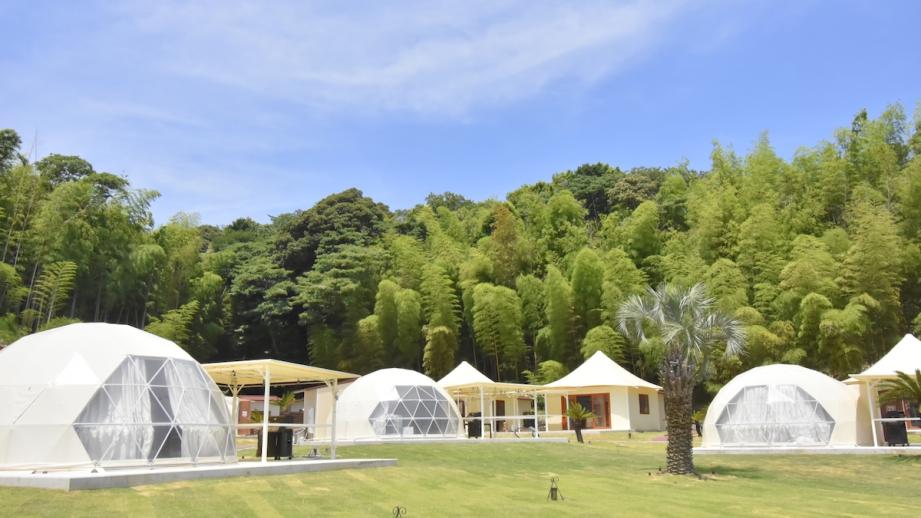 「伊豆グランヴィレッジ グランピング」で選べるテントは、ドームタイプとスクエアタイプの2種類。