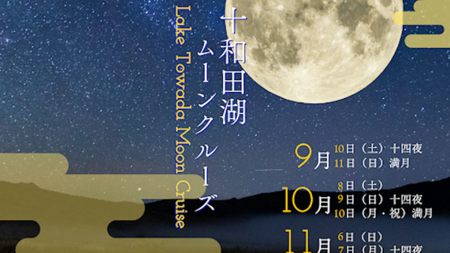 「十和田湖ムーンクルーズ」は、9月10日から11月7日まで計7回に渡って実施予定。この秋は「十和田湖ムーンクルーズ」で、月齢や天候で表情が変わっていく一期一会のお月見を楽しんでみませんか?