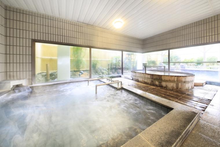 夜空を眺めながら良質な温泉を楽しめる露天風呂つきの大浴場も完備されています。炭酸水素塩泉と保温・保湿効果の高い塩化物泉を併せ待つ自家源泉で、日頃の疲れを癒してリフレッシュできます。