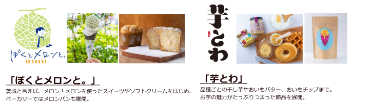 同施設の「農産物直売所」では茨城県のさつまいもをはじめ、生産者から直送された新鮮なズッキーニ、メロン、梨、白菜といった旬の農産物や米が並びます。食材だけでなく、特産品の魅力を活かしたオリジナルの加工品も多数。全国トップクラスの生産量を誇るさつまいもや人気の特産品、メロンを使ったスイーツはお土産にもぴったりです。