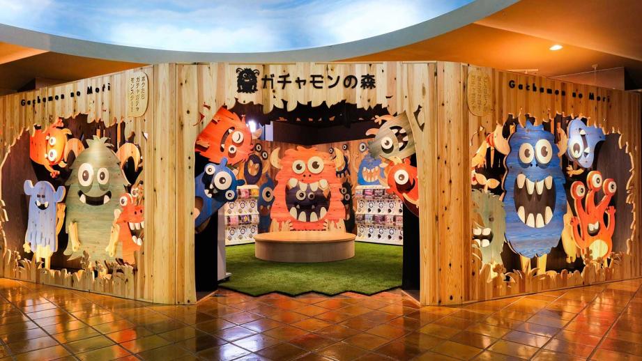 ウッディな空間でモンスターと約80種類のカプセルトイがお出迎え