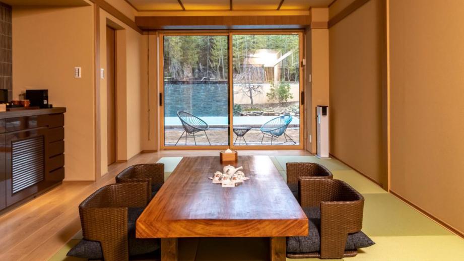 12の客室はすべてプライベートの温泉風呂付きです。中には露天風呂や半露天風呂とスチームサウナ、テラスなどを備える客室も用意。アメニティは「Bulgari (ブルガリ)」や「MARVIS(マービス)」、「DR.CI:LABO(ドクターシーラボ)」をそろえています。湯上りは旅館オリジナルのバスローブに身を包み、くつろいでください。