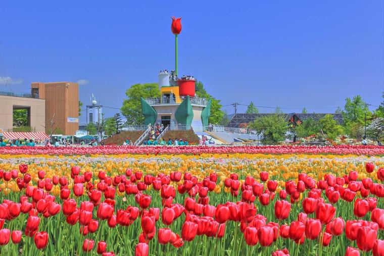 約300万本のチューリップが咲き誇り、北陸に春を告げるイベント