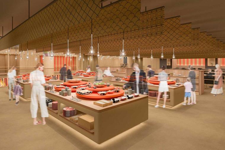 「OMOダイニング」では、「TOSAインスパイア」をテーマにしたバリエーション豊富なメニューが提供されます。高知の伝統料理「皿鉢(さわち)」に見立てたビュッフェテーブルには色鮮やかな料理が並び、高知の食文化を尊重しつつ、伝統的な料理をベースにした創作料理が楽しめます。