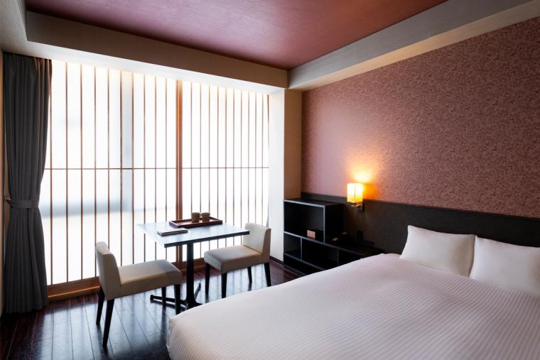 客室は和のテイストを取り入れつつも、広々としたベッドルーム仕様。観光で歩き疲れた日も、ふかふかのベッドに包まれて、安眠間違いなし。