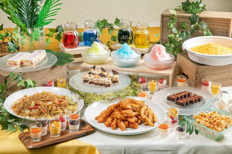 ブッフェでは、大人向けのメニューだけでなく、子どもたちが喜ぶキッズボードも用意されています。オムライスやハンバーグ、ソース焼きそば、唐揚げポテトなど、人気メニューが豊富にそろえられており、チョコレートファウンテンやかき氷などのデザートも楽しめます。